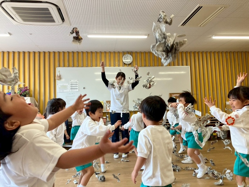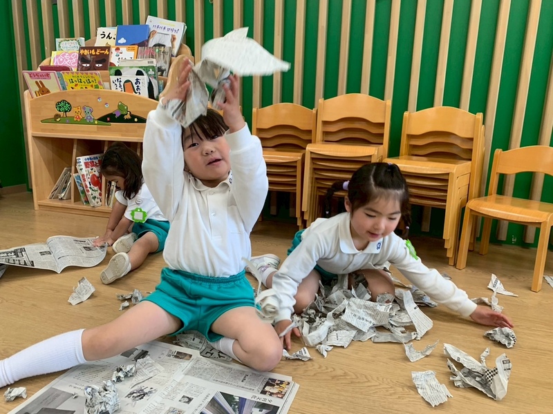 ちぎって上に投げたりと紙の感触を楽しみました。