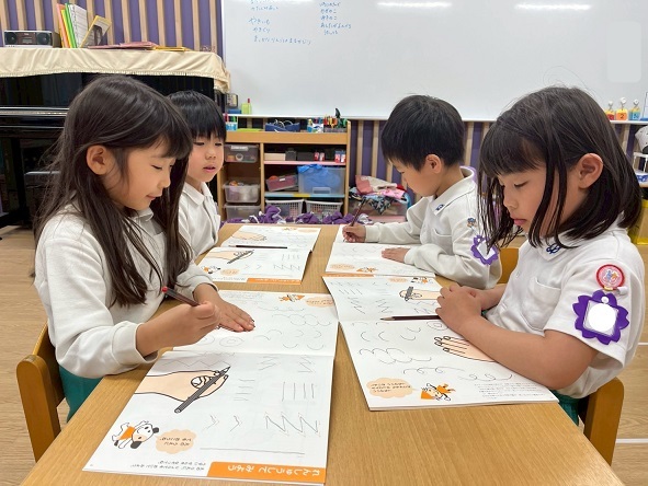 あやめ組さんは、文字ワークをしました。
