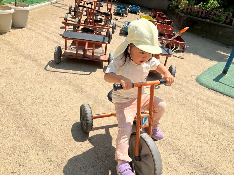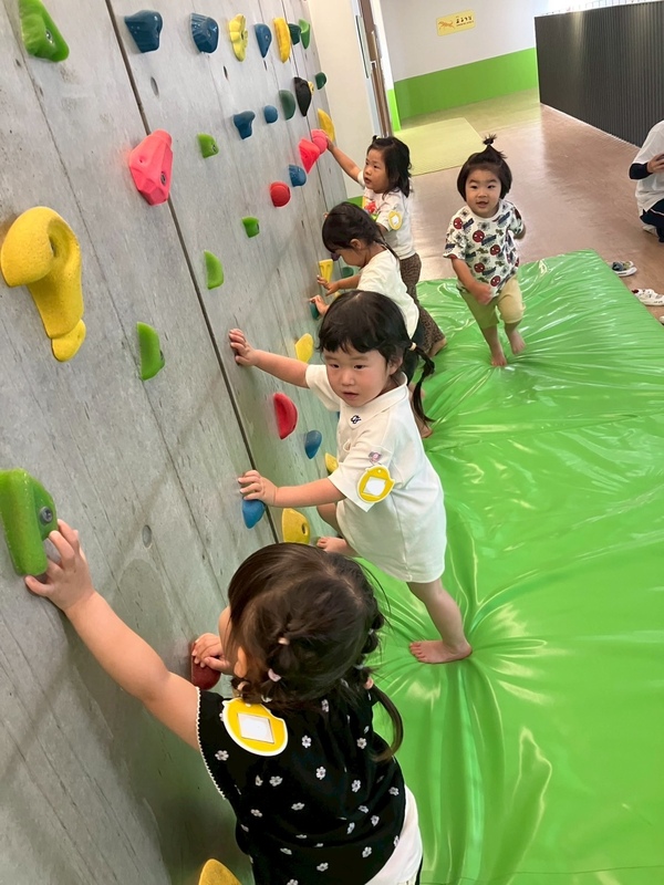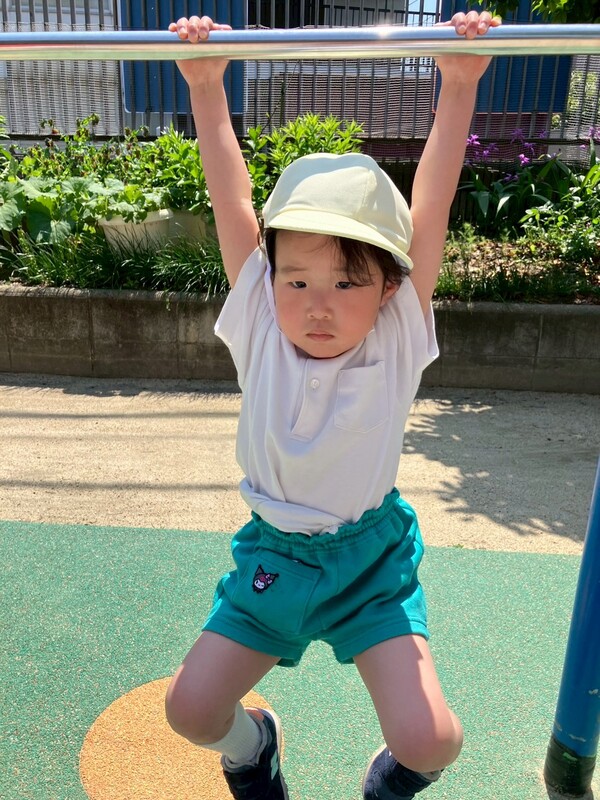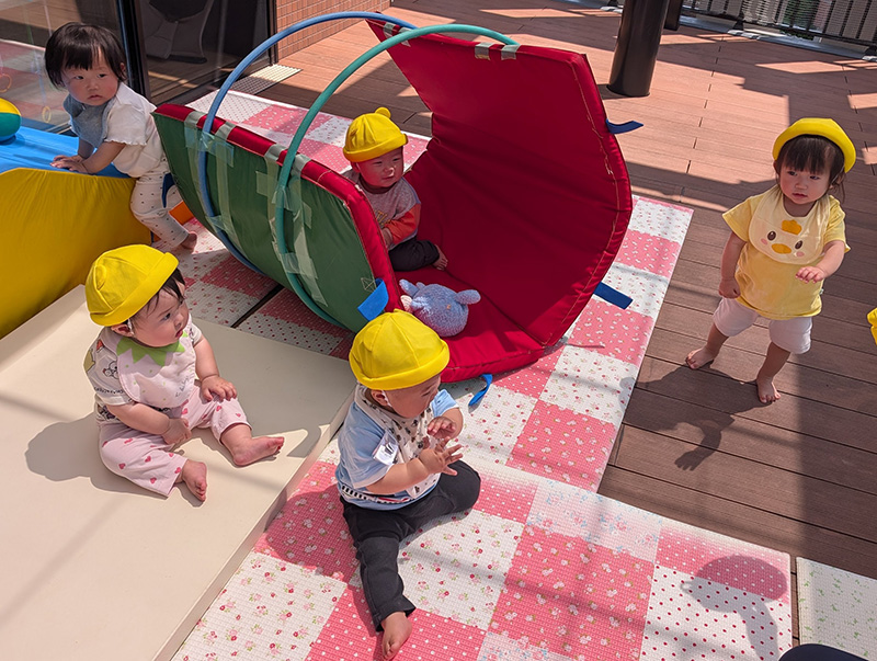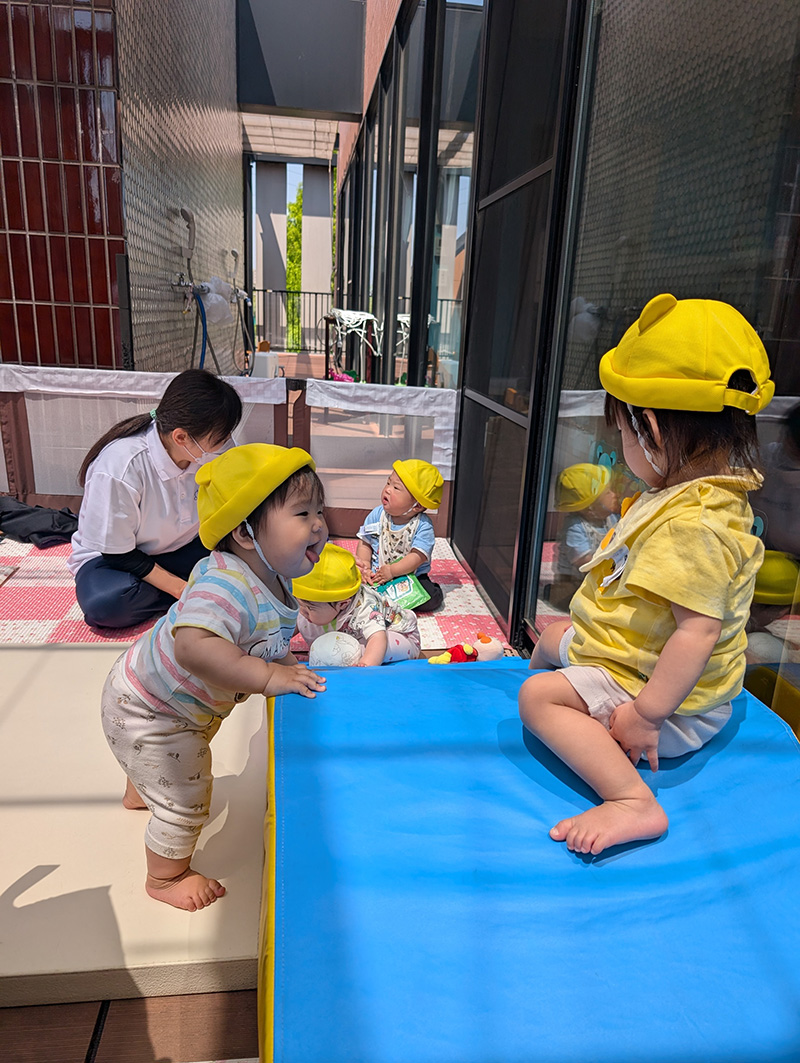 こあら組は保育室横のテラスで運動遊びをしました。