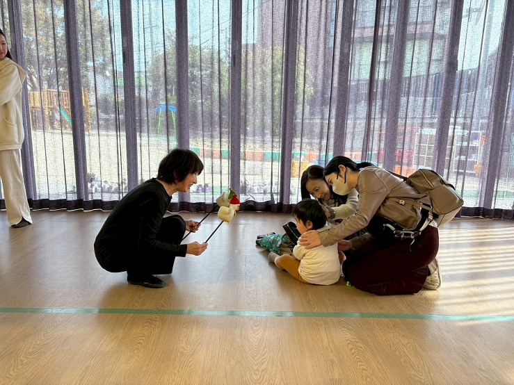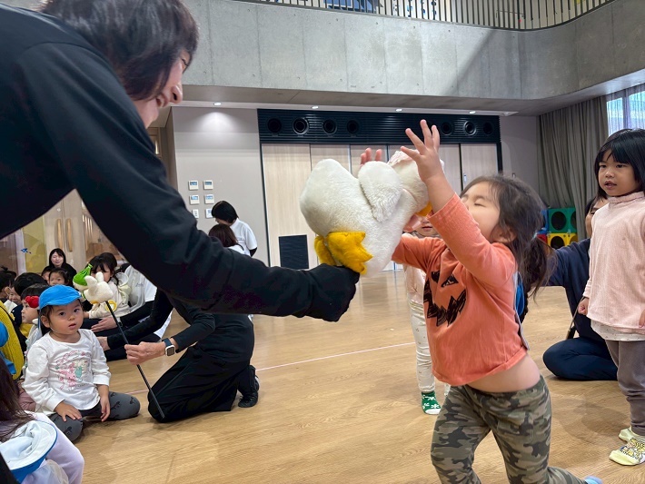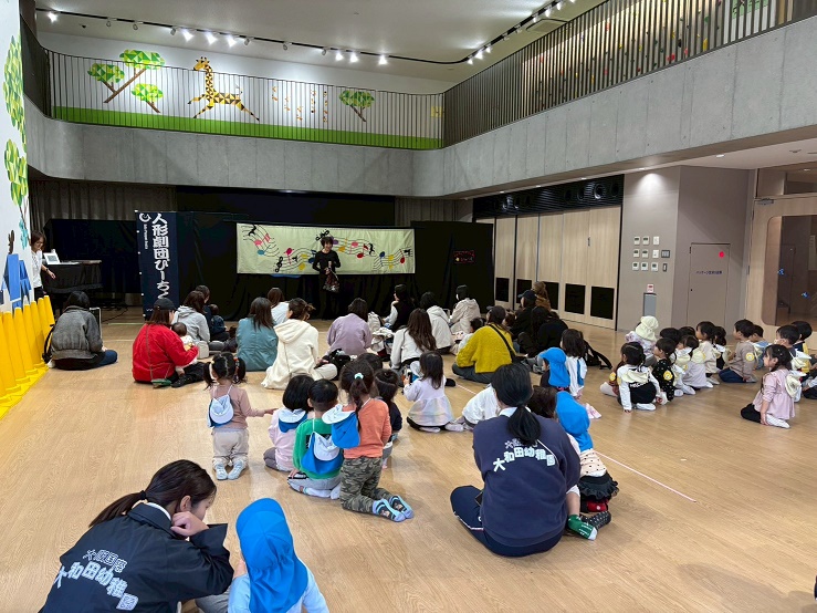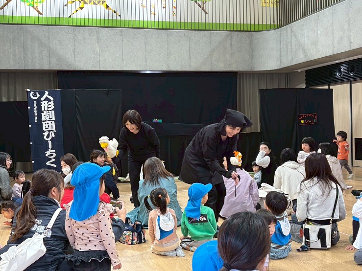 幼稚園のこあら組、ぱんだ組、ひよこ組の子どもたちも一緒に人形劇を楽しみました。