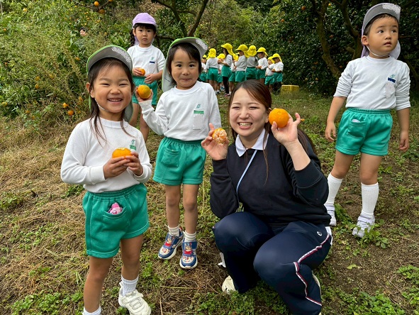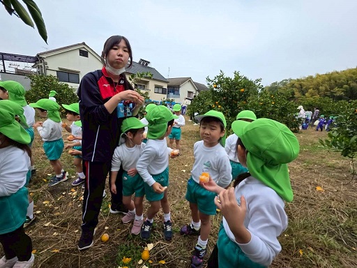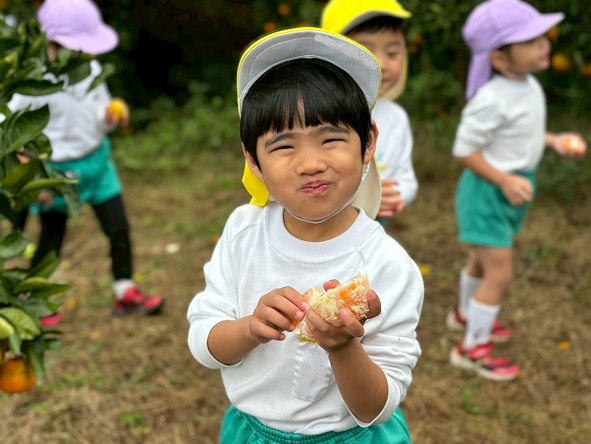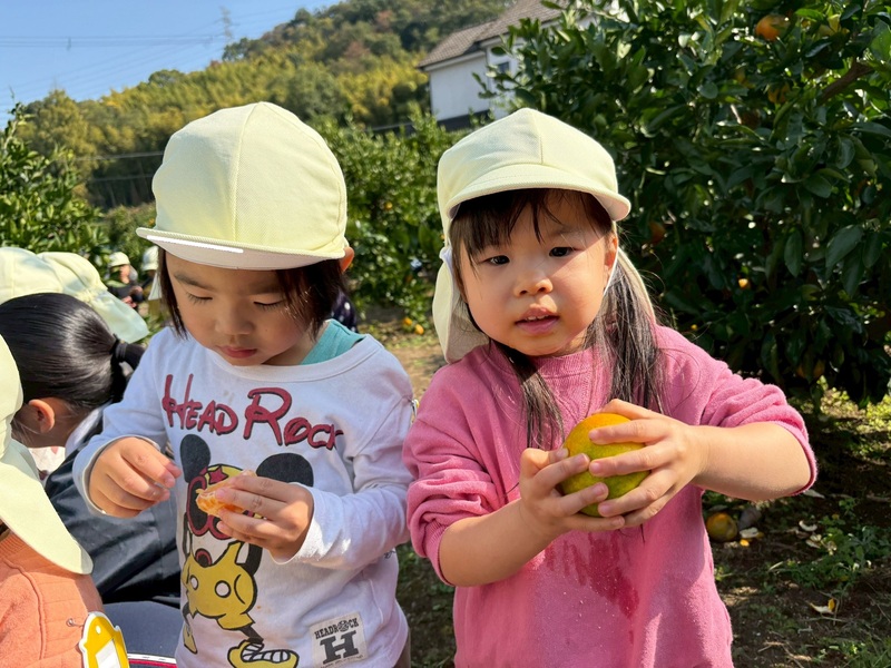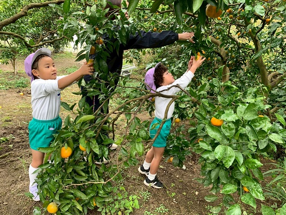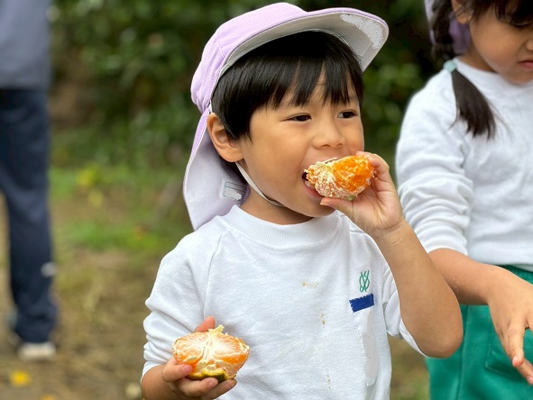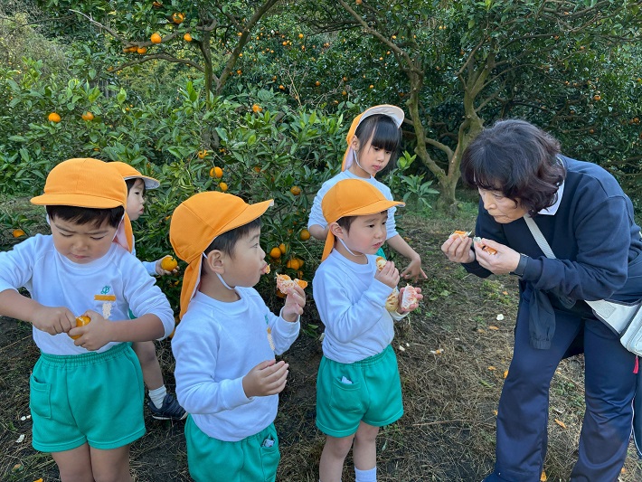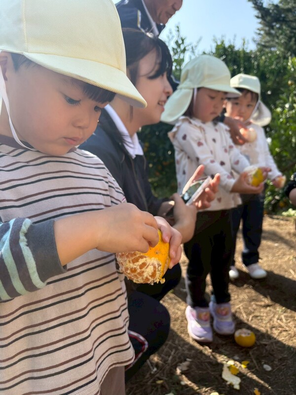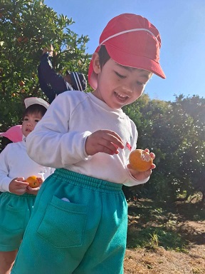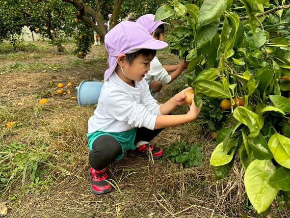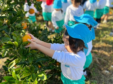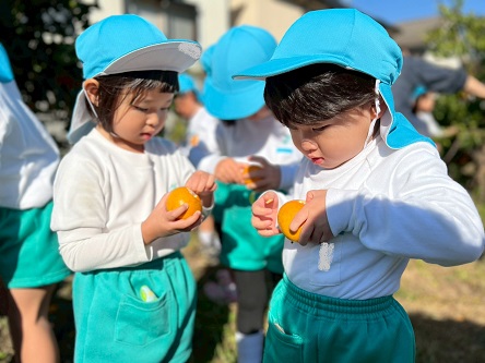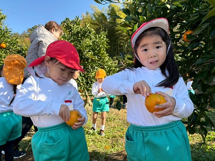 どのみかんが甘いかな~とお友だちと探したり、先生に教えてもらいながら、