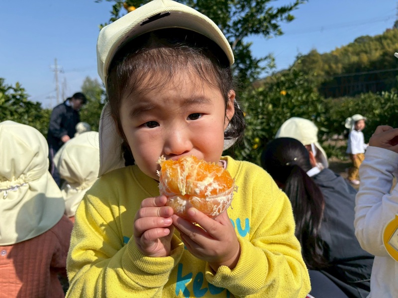 みんな口いっぱいにみかんを食べていました!