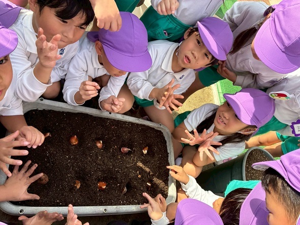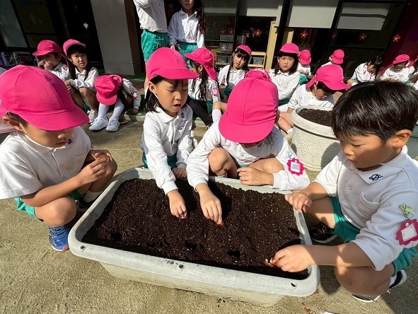 たまねぎは、年中組の子どもたちが年長組になってからの収穫となります。