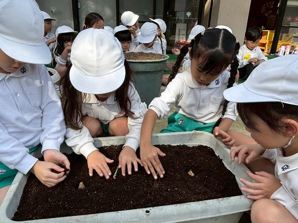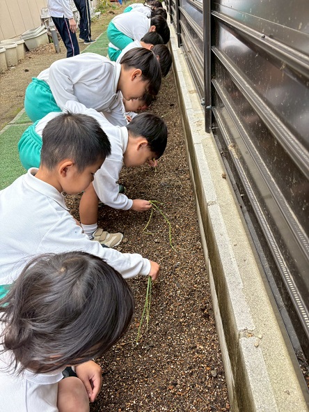 たまねぎの苗植え(年中組)
