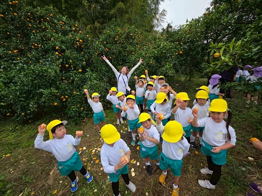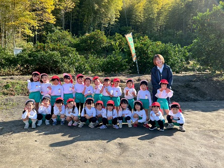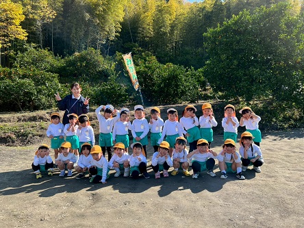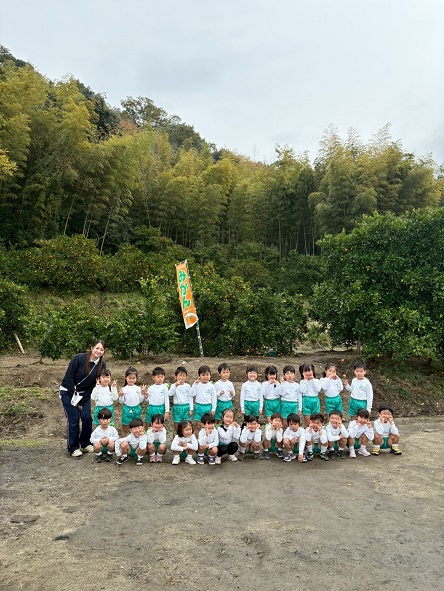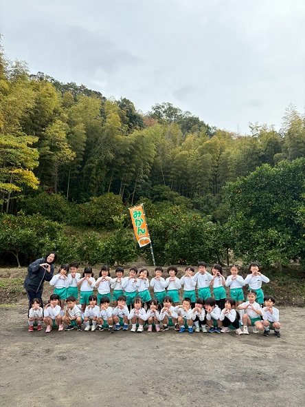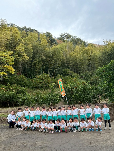11月13日 朝から小雨が降っていて『行けるかな~』とちょっぴり心配していた年中組の子どもたち。出発する頃にはすっかり雨は上がり、予定通り交野金沢農園へみかん狩り遠足に行ってきました!