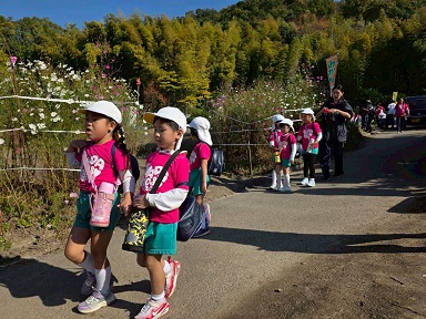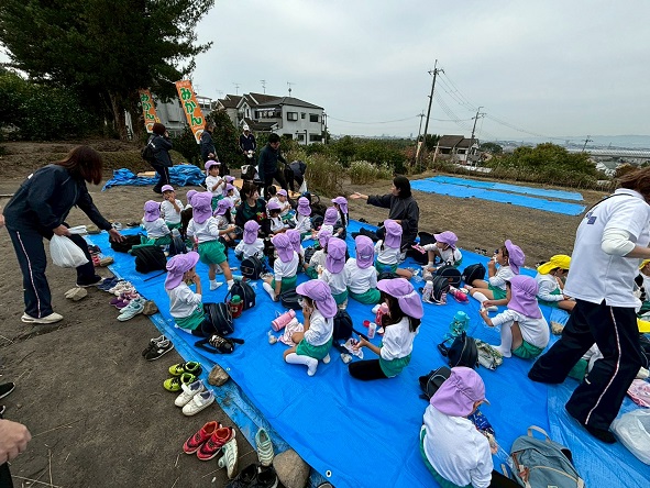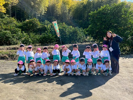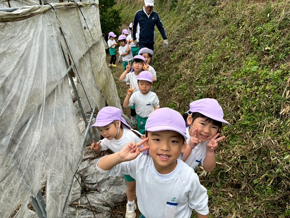 11月20日 年少組は、晴天の中、幼稚園バスに乗って交野金沢農園へ