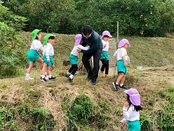 おにぎりを食べた後も、またみかんを食べたり、みかん畑を探検して遊びました!