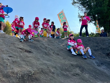 11月17日 秋晴れの中、年長組は、おそろいの運動会のダンスTシャツを着て