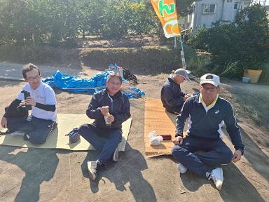 お家の方が作ってくれたおにぎりを青空の下、