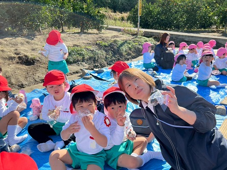 自分で皮をむいて、『せんせい、あま~い』、『おいし~い』とおなかいっぱい食べました。
