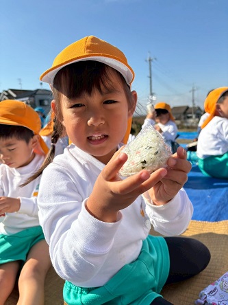 みかんを食べた後は、お楽しみのおにぎりタイムのはじまりです♪