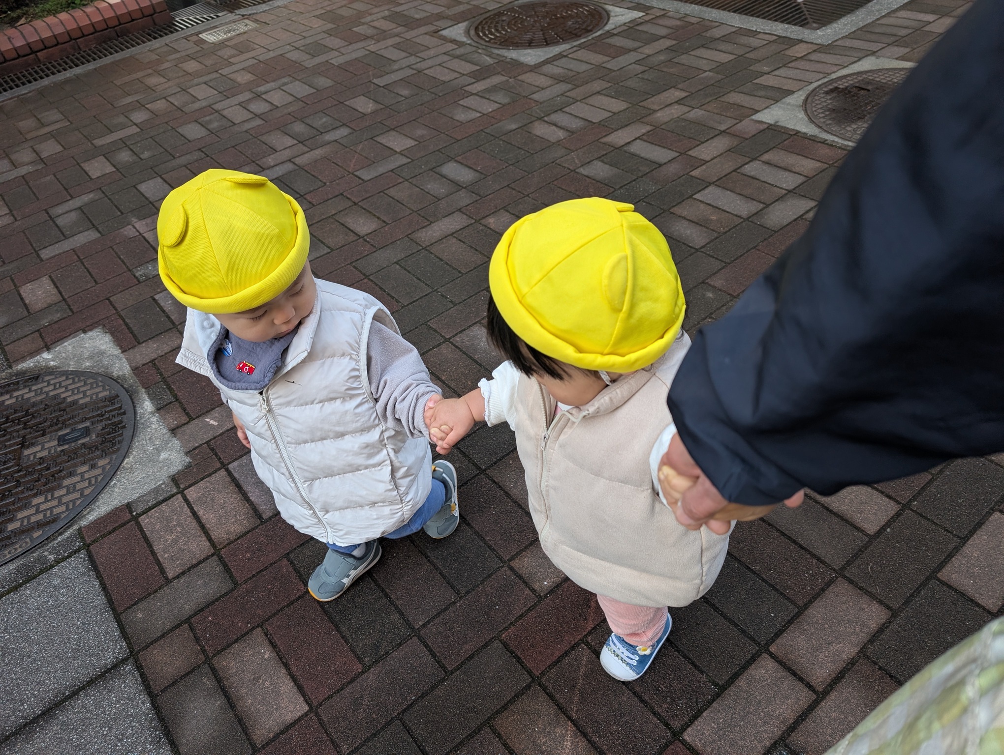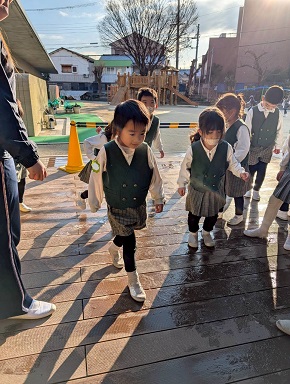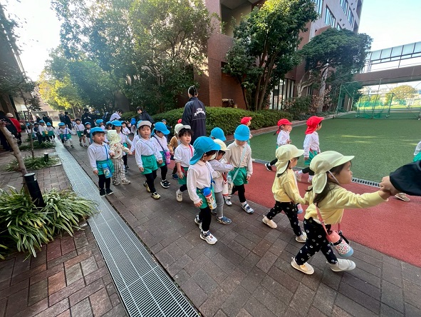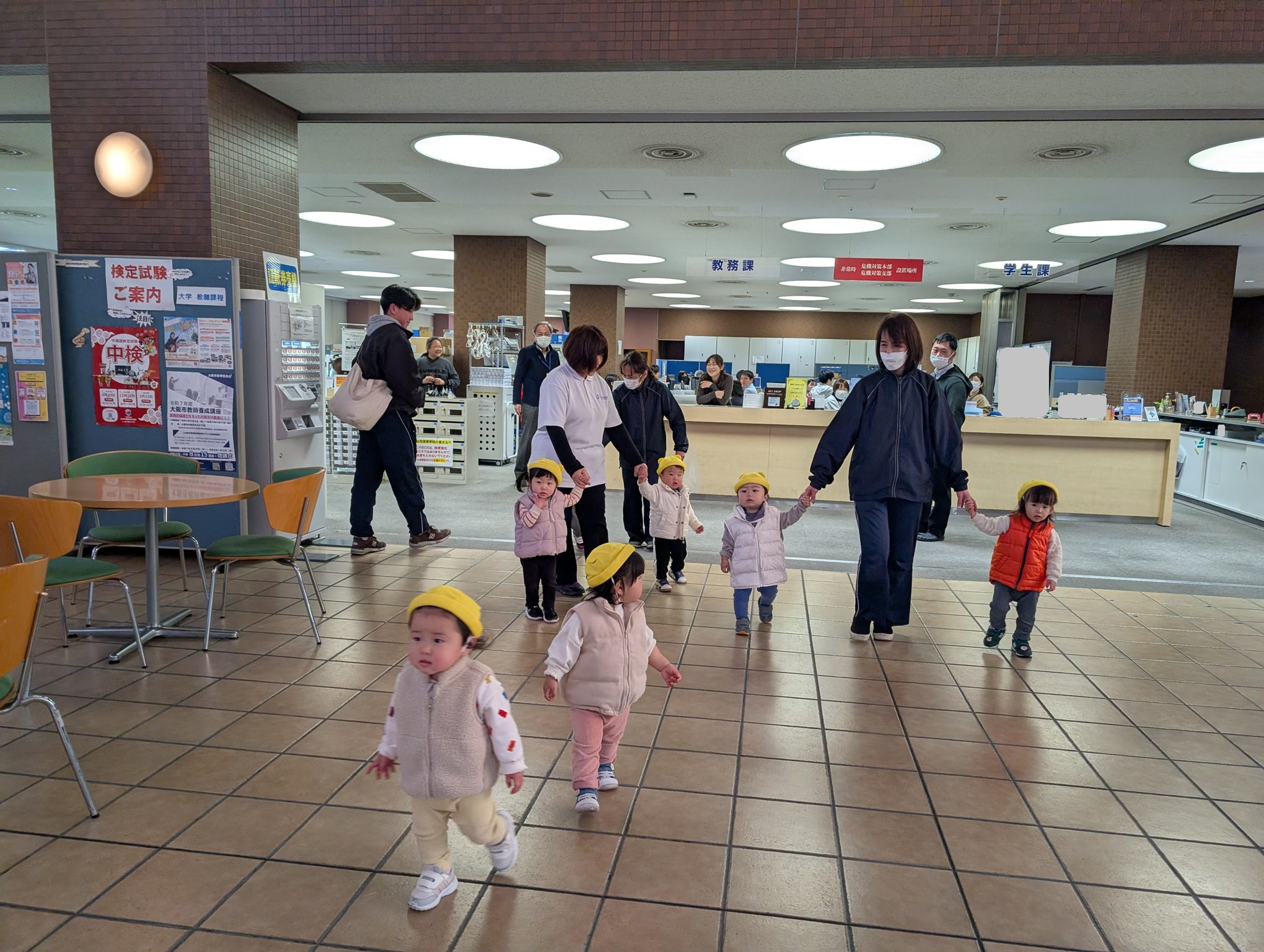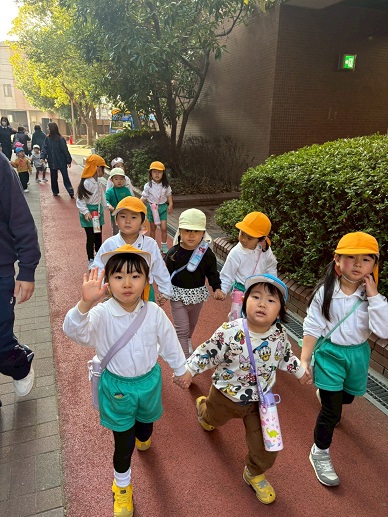 こあら組はキャンパスセンターへ、お友だちと手をつないで行きました。