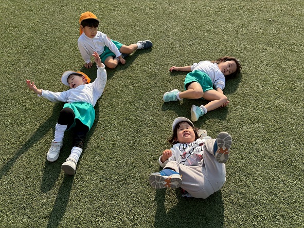 おいかけっこやゴロンと寝転がったりと暖かな日差しの中たくさん遊びました!