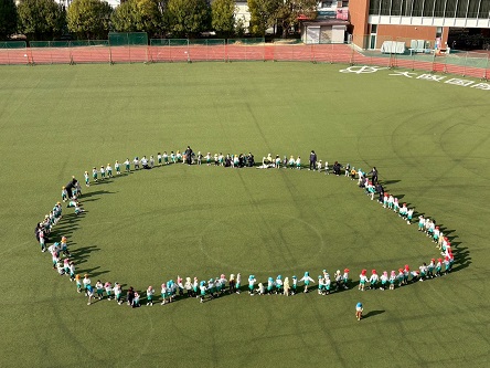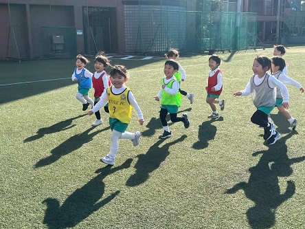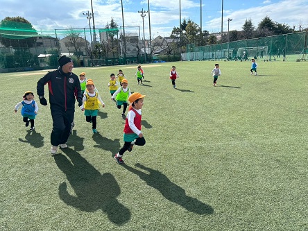 年少組さんとひよこ組さん、ぱんだ組さんは、一緒に大学グラウンドで