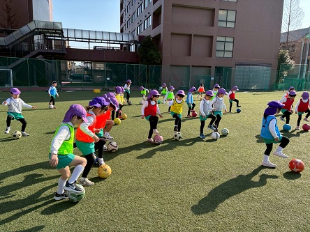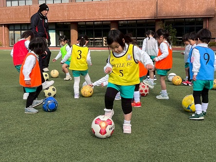 ゴール目指してボールを追いかけ全力のプレーでミニゲームを楽しみました。