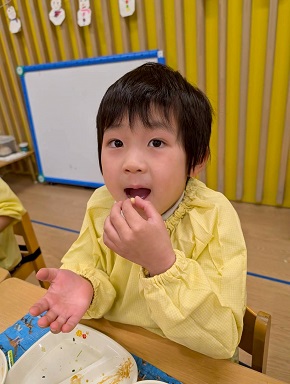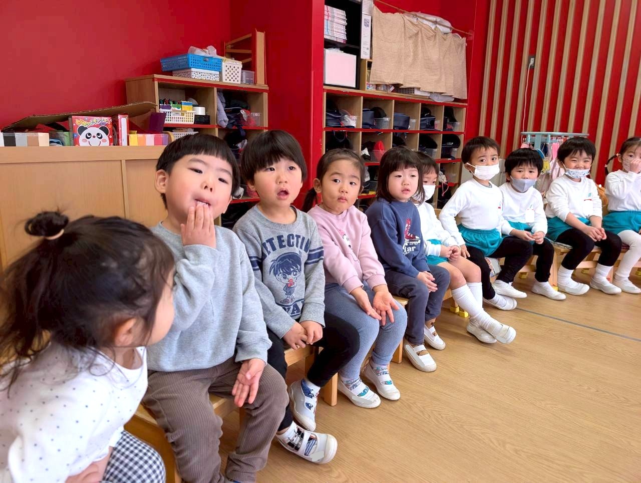 1月28日 ひよこ組さんは、年少組の各クラスに分かれて