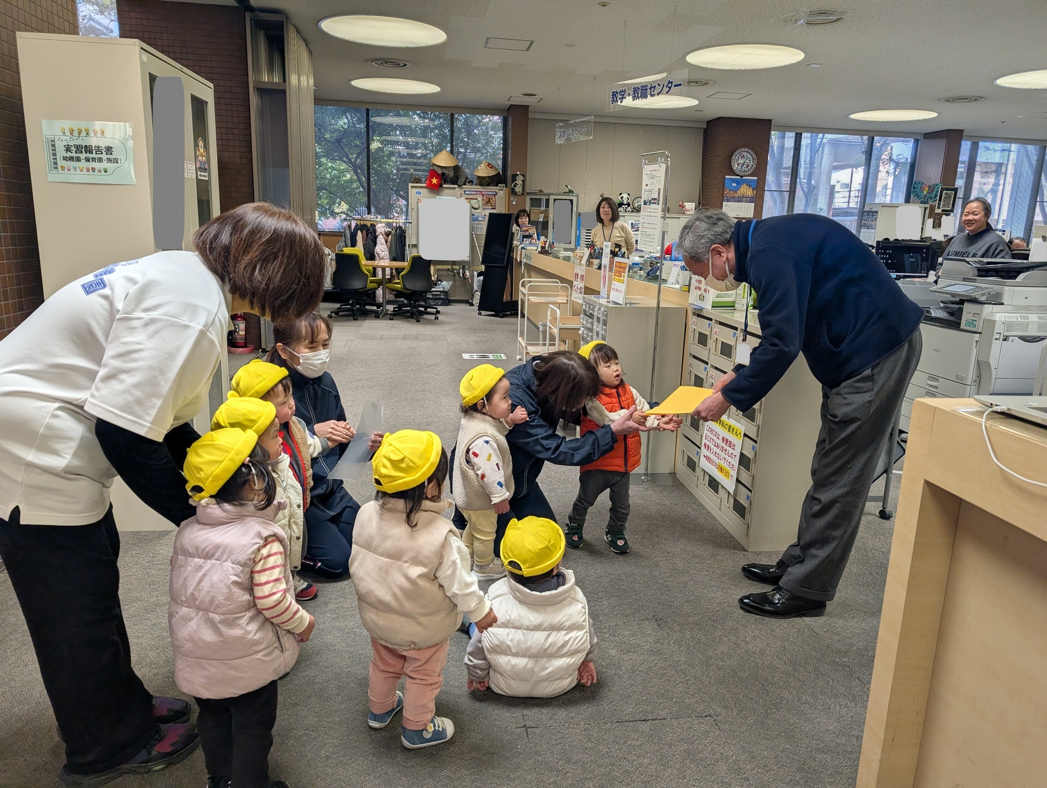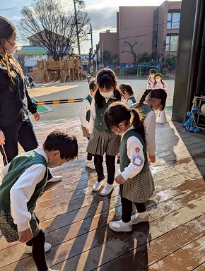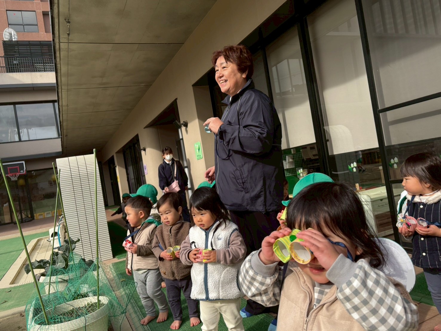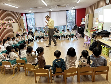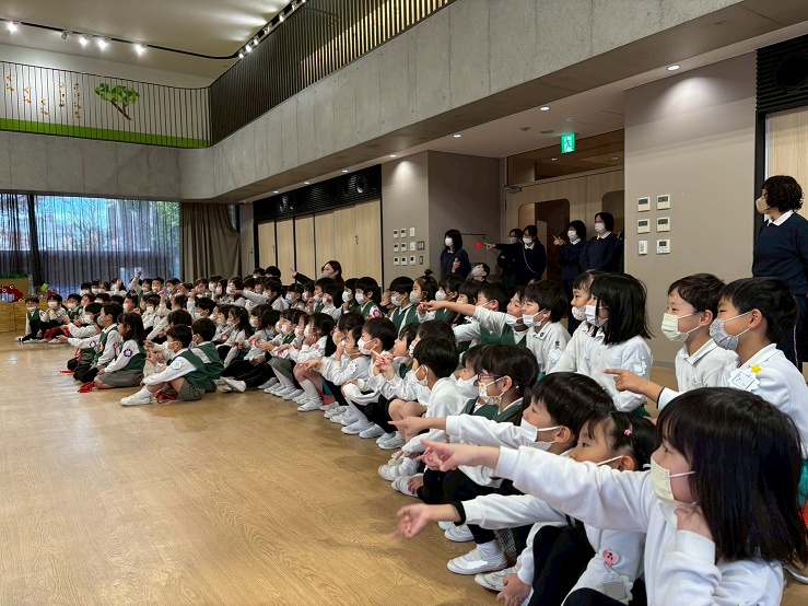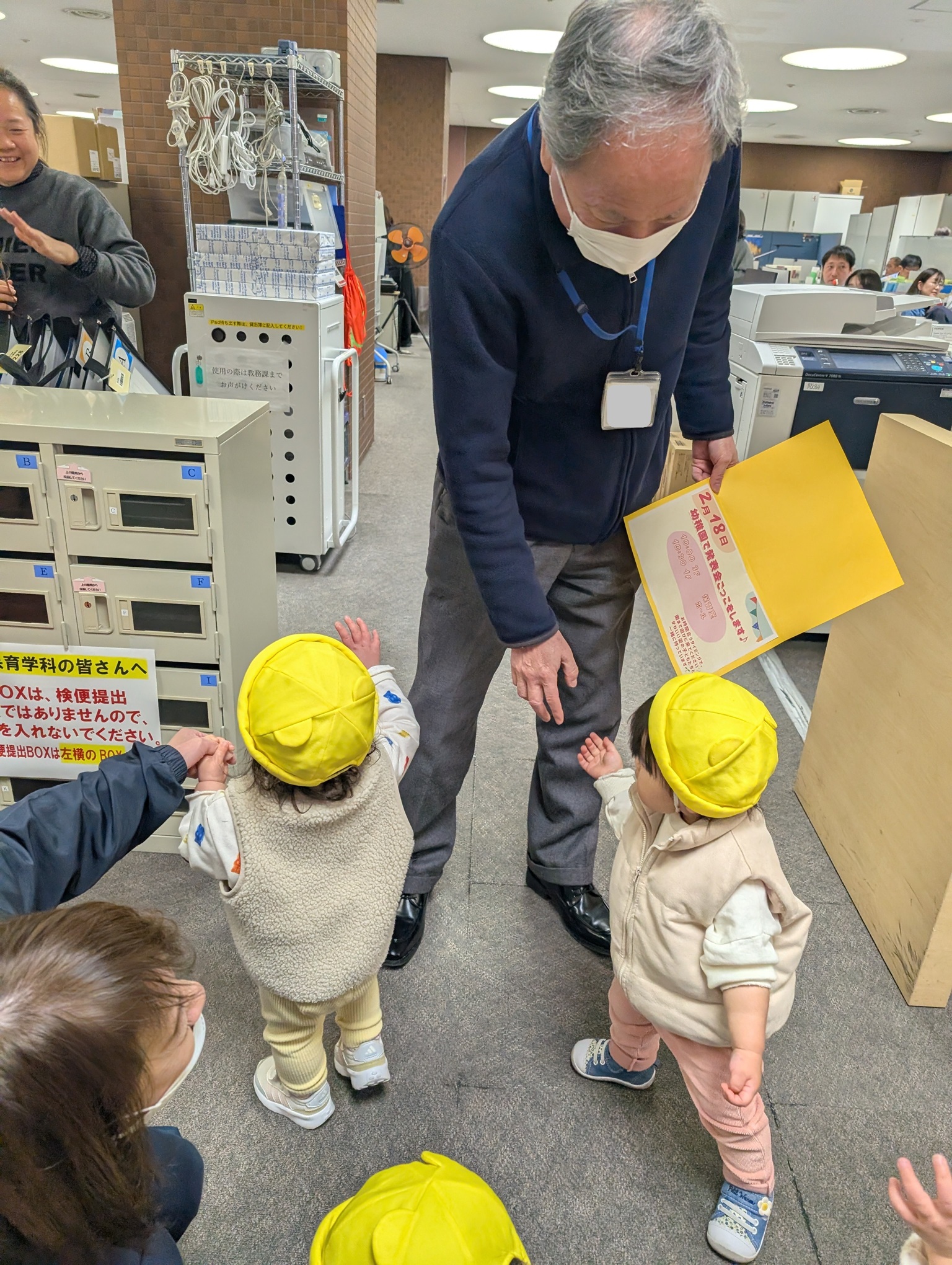 年少組のお友だちは、理事長先生と学園本部の方々へ