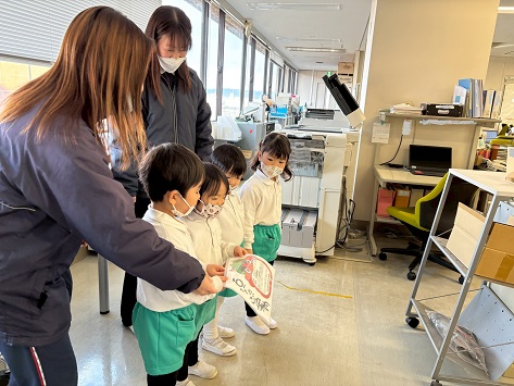 『まめまきをするのできてください♪』と"豆まき"の招待状を渡しに行ってきました!