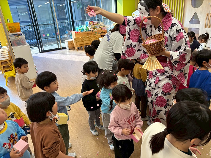 今回は、学園本部の方々も参加してくださり、一緒に豆まきを楽しみました。