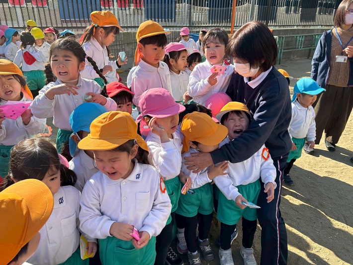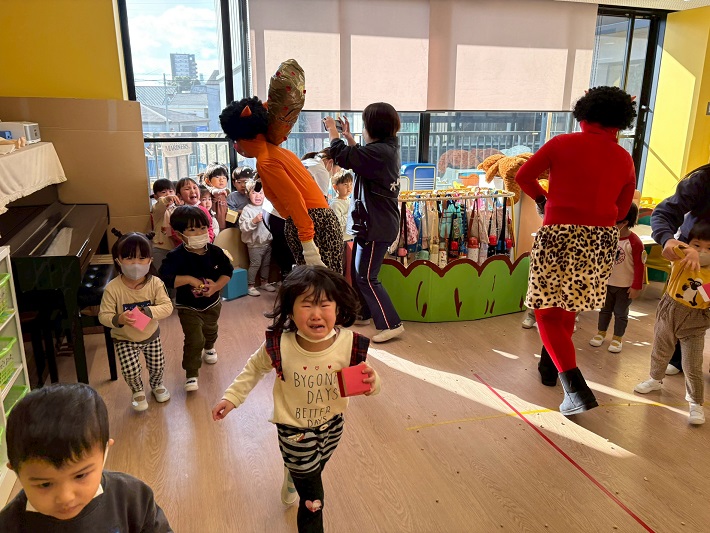 鬼に捕まってしまう子どもや先生・・・ 幼稚園は大パニックです。