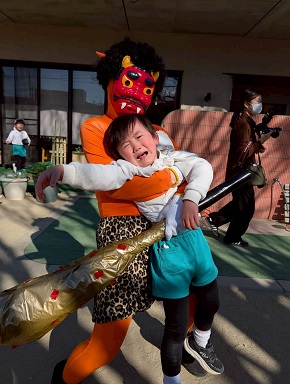『鬼はそと! 福はうち!』必死で豆を投げる子ども達。