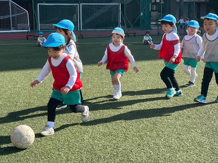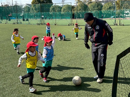 ゴールをしようと一生懸命ボールを追いかけ、気分はJリーガーな子ども達です!