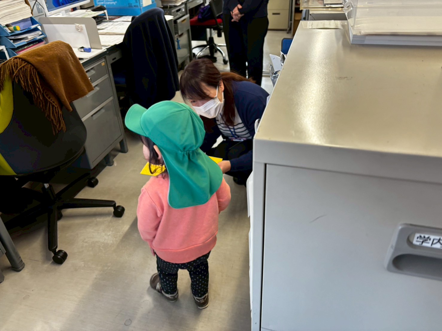 鬼が怖くてしかたがないお友だちは、職員室に隠れています。
