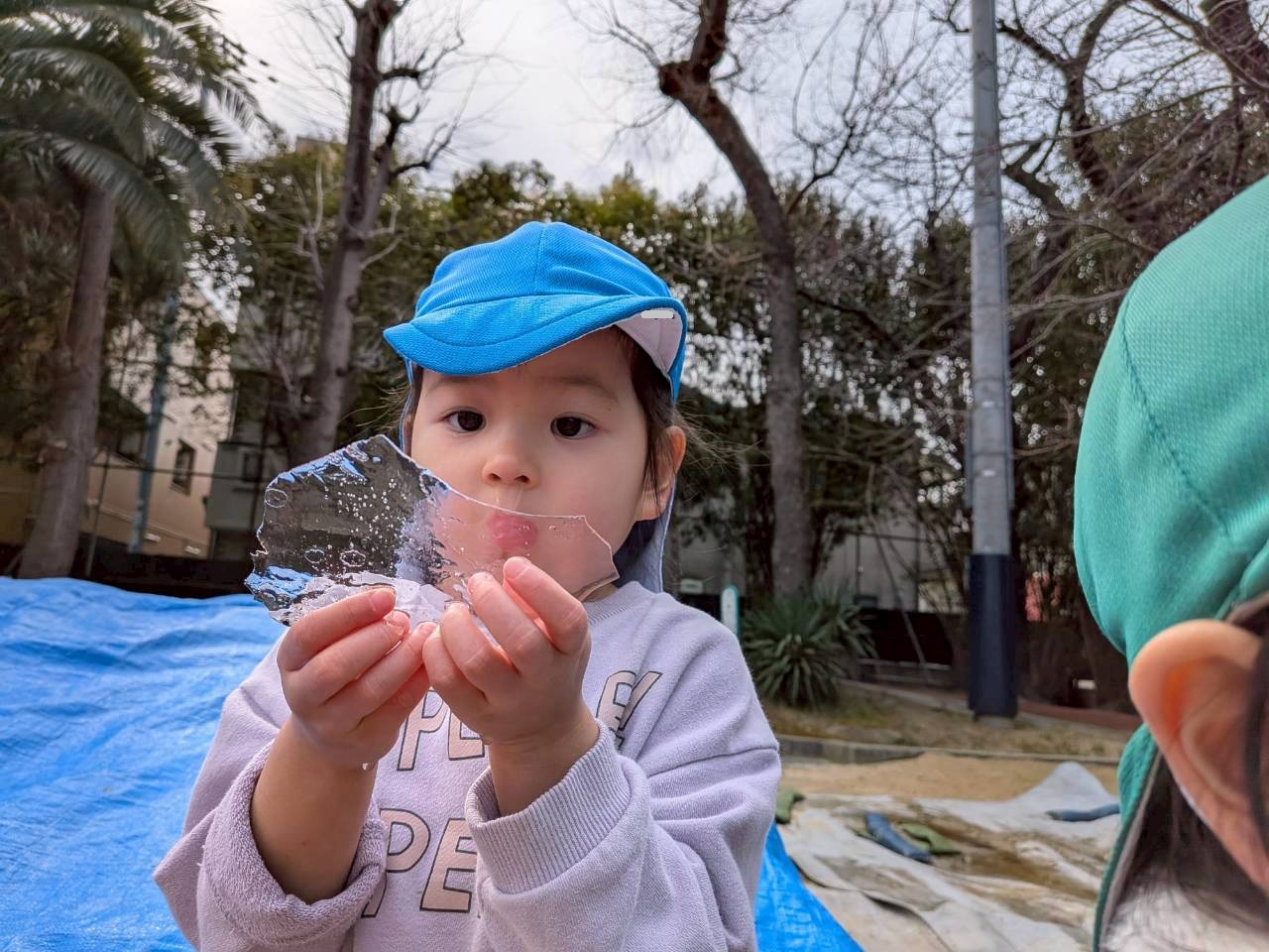 キャーキャー歓声をあげ、手を真っ赤にしながら氷の感触を楽しんでいました。