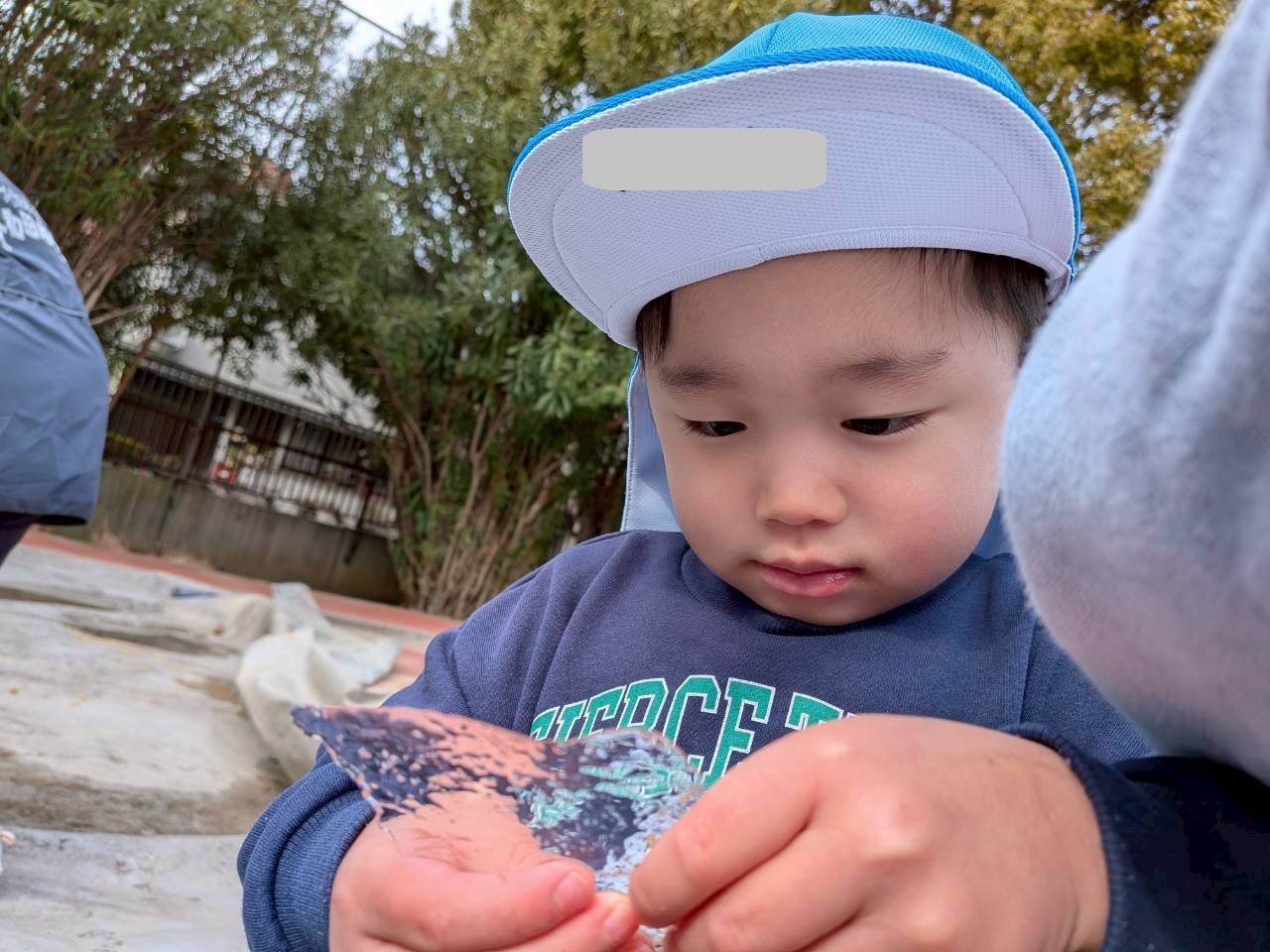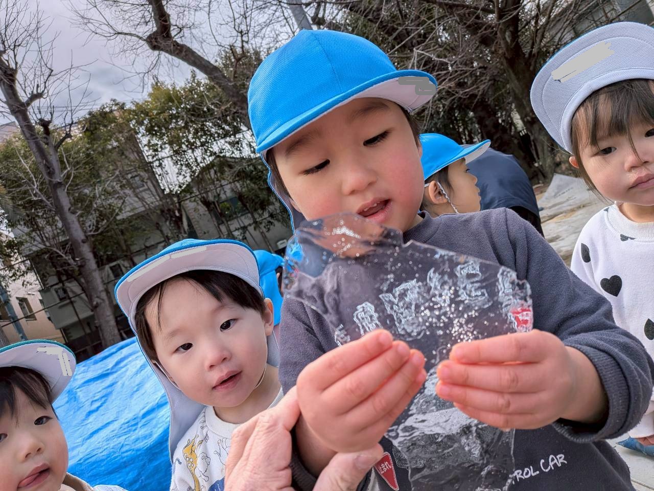 先生に見てもらいながら、凍ってツルツルした感触を楽しみました。